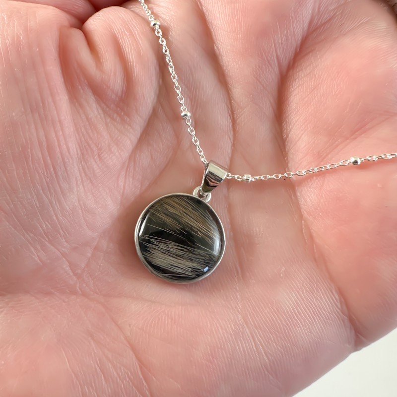In deze ronde hanger (13 mm) verwerk ik met de hand een plukje vacht of haar van jouw huisdier, of dat nu je hond, kat, paard of konijn is.